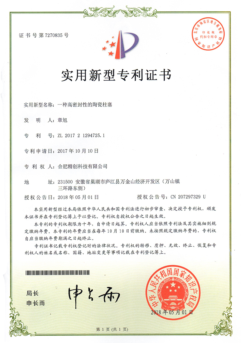 (2018實用新型)一種工作面全陶瓷的陶瓷柱塞